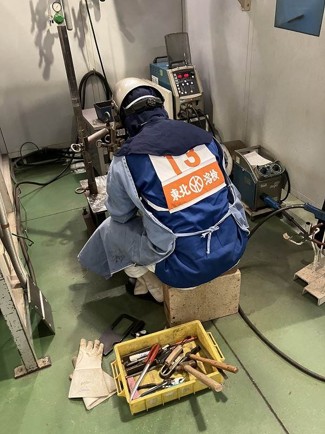 7日(土)に第71回秋田県溶接技術競技会がポリテクセンター秋田にて開催されました。アーク溶接の部に8名、半自動溶接の部に44名の合計52名の選手が出場し、日本精機からはアーク溶接の部に5名、半自動溶接の部に2名が出場しました。今年から薄板に取り付ける邪魔板の位置が変更になり、練習の時から苦戦していました。